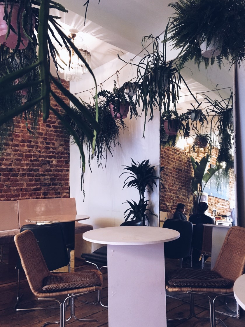 Firstly I was blown away/insanely jealous of the plush pink and very 70s-inspired interior. Lots of crushed blush velvet, gold decor and of course green foliage; it really is a great looking place.