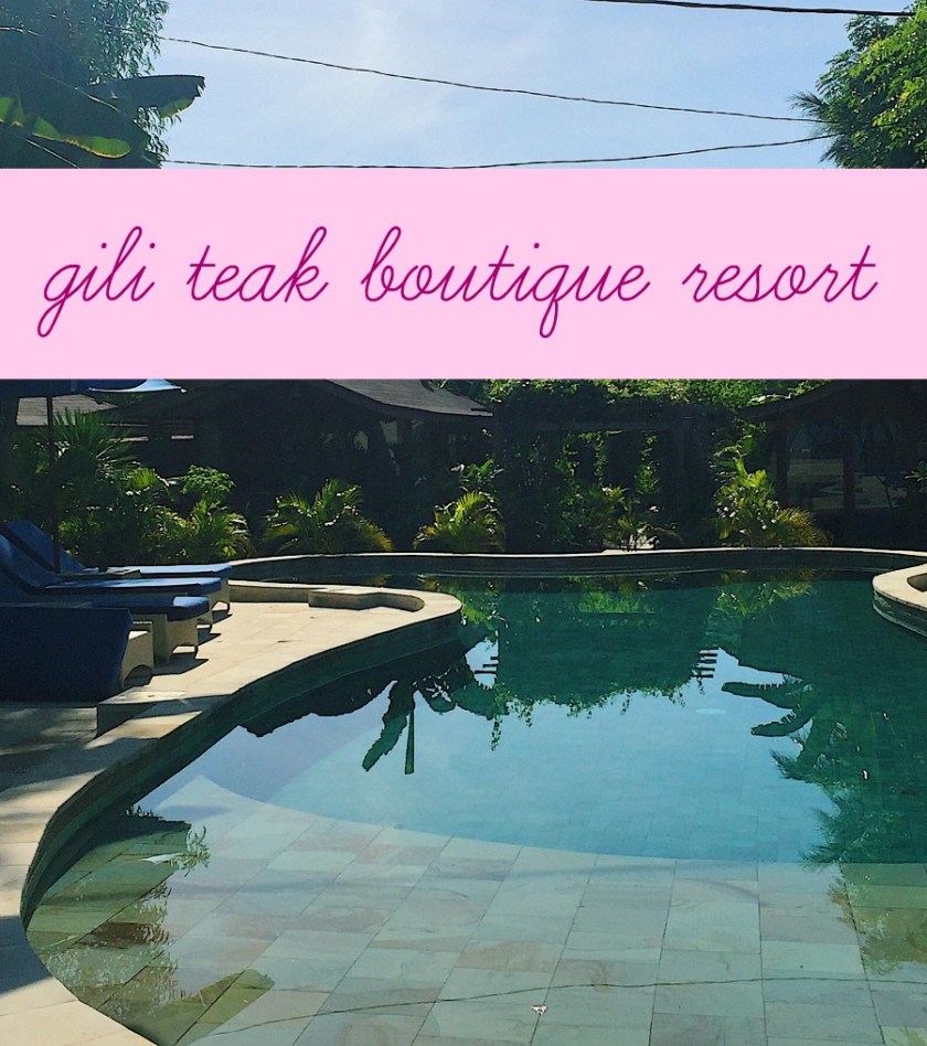 I’m usually very much a budget traveller – I’m happy enough to be in the sun and not working. But I do love a good hotel (read my hotel reviews HERE). So while in Indonesia this year I thought I’d treat my boyfriend and I to a chi chi place in Gili Trawangan. My friends Grace and Sean put me on to this place, so thanks guys. Gili Teak resort is on the quite side of Gili T. – and island known for its parties and as the rowdier sister to Gili Air and Gili Meno. I love Gili T. and the fact it’s busy and you can party on a night, but there is a quiet part, so you get the best of both worlds. After getting off the boat from Bali, the heavens opened and there was a huuuuge tropical thunderstorm, which made the 20 minute walk to the hotel from the boat more like 40 minutes. And I was terrified I was going to get struck by lightening – not to …